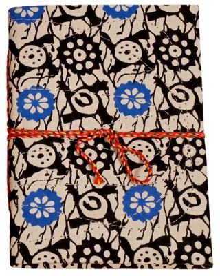 Cahier, couverture tissu et motif floral noir (18x13, blanc)