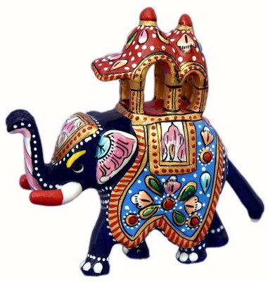 Éléphant palanquin (statuette métal émaillé, 3 pouces, bleu ciel, rouge)PRODUIT :